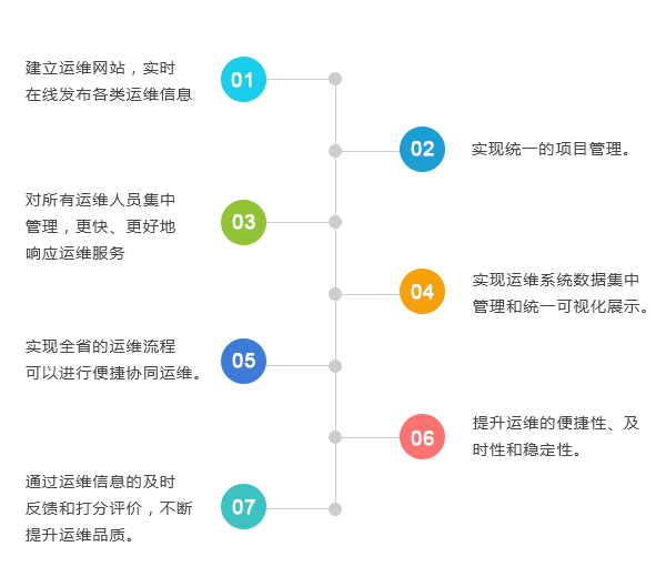 方案實施具體目標(biāo)通過統(tǒng)一運維管理及運維服務(wù),實現(xiàn)快速服務(wù),標(biāo)準化服務(wù),對運維過程持續(xù)監(jiān)督,找到運維工作不足之處,使運維管理過程能夠持續(xù)優(yōu)化、規(guī)范化,并不斷改進,從而進一步滿足黑龍江全省檢察院設(shè)備和業(yè)務(wù)系統(tǒng)不斷增長的需要。實現(xiàn)如下運維目標(biāo):