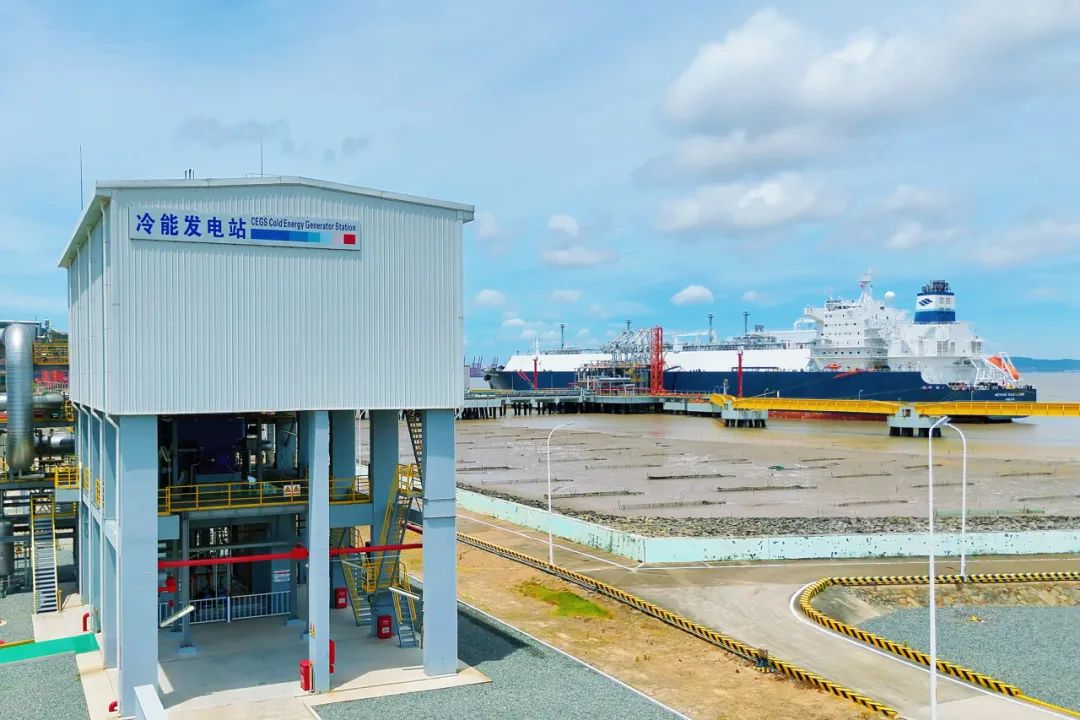 LNG冷能發(fā)電是將LNG氣化外輸過(guò)程中產(chǎn)生的冷能有效利用參與發(fā)電。該套冷能發(fā)電裝置依托寧波“綠能港”接收站二期工程項(xiàng)目已建成的分體式中間介質(zhì)氣化器建設(shè),設(shè)計(jì)年發(fā)電量約2300萬(wàn)度,相當(dāng)于每年減少二氧化碳排放約1.4萬(wàn)噸,植樹(shù)造林78萬(wàn)棵,節(jié)能降碳效果顯著。